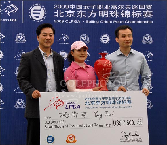中国高尔夫球协会常务副主席张小宁向杨涛丽表达了恭喜:“北京东方明珠锦标赛不仅是2009赛季第一站,也是中国女子巡回赛的第一站,具有划时代的意义。在这里,我要恭喜杨涛丽赢得这样一个历史性胜利。”