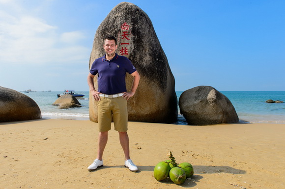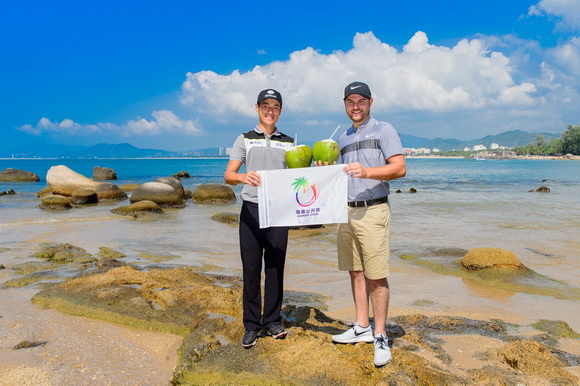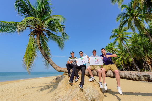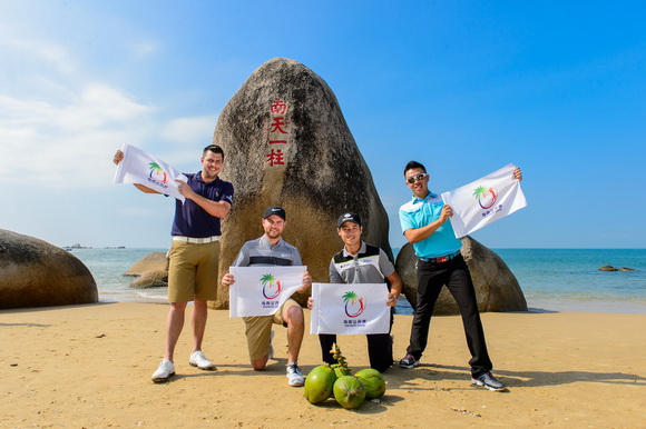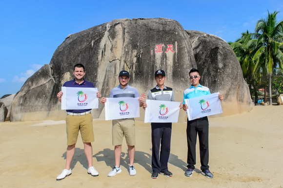 【golftime讯】10月11日,在2016海南公开赛暨欧巡挑战赛开赛之前,中国球员欧阳正、佘梓瀚,以及欧洲球员Jordan Smith、Sam Walker四位球星一起来到了三亚市地标风景区天涯海角,为本次比赛拍摄了开赛宣传照,以下为他们的精彩瞬间!