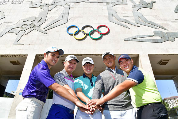 【golftime讯】10月31日,周二,“漳州·东南花都温泉”杯2017中国高尔夫球职业业余配对锦标赛球星秀活动在中国漳州市中国女排腾飞纪念馆和漳州花博园举行。男子职业组球手袁浩、曹一、金大星、杨伊农和吴剑龙出席了此次活动。