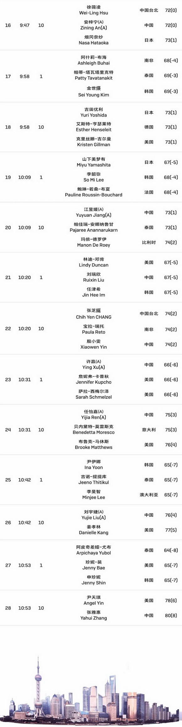 2025别克LPGA锦标赛第三轮分组表 按前两轮...(10月10日)