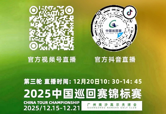 次轮战罢,三位领跑者虽形成三足鼎立之势,但后面的球员紧追不舍,赛事悬念持续拉满。12月20日赛事进行第三轮,10:30-14:45,观众可通过中国巡回赛官方视频号、官方抖音、官方微博等平台观看全程直播,见证冠军追逐的激烈过程。