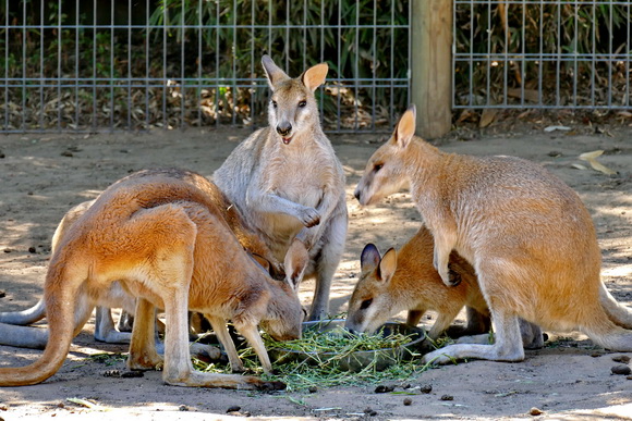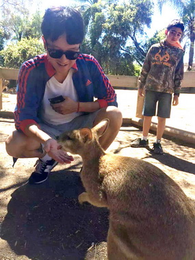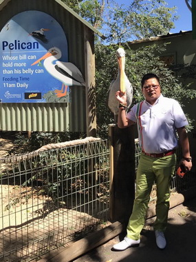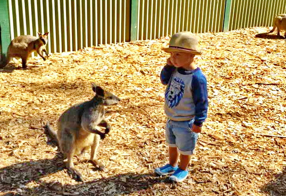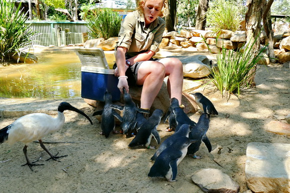 大家在悉尼橡树河谷高尔夫度假村不到两天的时间里,已经近距离司空见惯了成群结队的袋鼠,没想到来到仅40分钟车程的悉尼费瑟戴尔野生动物园(Featherdale Wildlife Zoo),却能更加亲密接触了向往已久的澳洲国宝袋鼠、树袋熊、鸸鹋等多种动物。坐落于悉尼西部Blacktown附近于2006年对外开放的费瑟戴尔,覆盖面积达28000平方米,是拥有澳洲本土动物品种最多的室外野生动物园,因引人入胜、互动性强而深受游客欢迎,已成为悉尼的一大知名景点,它同时也是世界上最大的室内野生动物园,生活有上千种动物。动物世界分为10大展馆,即彩蝶飞舞、无脊天下、爬行异族、峡谷飞行、午夜迷踪、骄阳似火、热带雨林、袋鼠悬崖、澳洲宝贝和半干旱大草原,参观每个展馆都是一次刺激的探险,一次梦幻般的旅行。在这里特色节目包括面对面的树袋熊接触,喂袋鼠、鸸鹋,企鹅,刺猬,蝙蝠,鹈鹕,袋獾,鳄鱼和澳洲野狗以及其他多种珍稀的土生动物喂食。