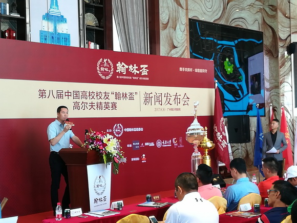 【golftime讯】2017年8月30日,第八届中国高校校友“翰林盃”高尔夫精英赛在广州南沙御苑项目会所举行了新闻发布会,发布会上,“翰林盃”组委会邀请了本届参赛球队代表、赞助商代表及特邀媒体代表,共同见证了这一高球界的盛事!“翰林盃”秘书长冯云首先为到场嘉宾简单介绍赛事的亮点以及手机端的推广方式,本届赛事将继续由广东高尔夫频道全程对赛事录制、直播和录报,赛事的重要内容和球队球员介绍会在高尔夫频道滚出报出。“翰林盃”副主席刘恕紧接着上台介绍本届赛事的赛程、赛制,最后由“翰林盃”主席张毅为本届赛事发表致辞。