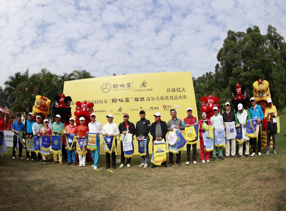 开球仪式过后,参赛队员和嘉宾们聚集在开球区,留下了珍贵的大合影。在阳光明媚的冬日里,队员们都肩负着为母校荣誉而战的神圣使命,努力发挥出自己的最佳状态。经过长达数小时的激烈角逐,成绩在裁判团的紧张统计后亦见分晓,最终华南理工大学以621杆的优异成绩成功卫冕“翰林盃”冠军。