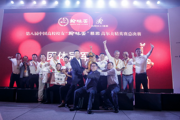 最后当然就是众所期待的正赛冠亚季军队伍。获得季军的是中山大学(629杆),获得亚军的是华中科技大学(625杆)。最激动人心的时刻,冠军由华南理工大学以621杆斩获!翰林盃主委会主席张毅以及锦上名店董事长张邦肯共同为冠军队伍颁奖,成功卫冕冠军的华南理工精英队员们兴奋若狂。