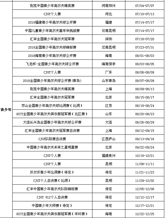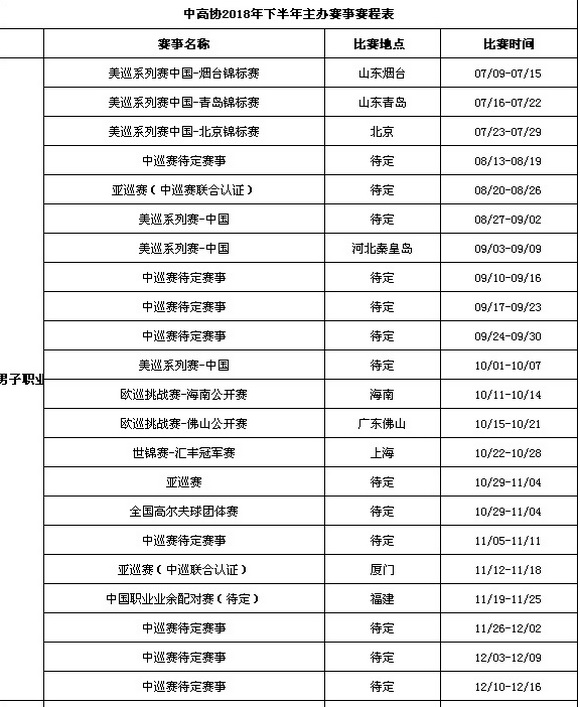 中高协关于印发2018年下半年主办赛事赛程表的通知