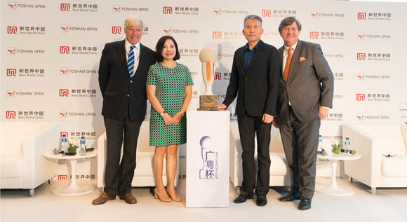 【golftime讯】今天,广州时尚圣地K11成为了高球业界的聚焦之地。粤港澳大湾区的年度体育盛事——2018欧洲高尔夫球挑战巡回赛 佛山公开赛 在此举办了极富创意的启动仪式,向世界宣告第六届佛山公开赛的到来。启动仪式结束后,中国高尔夫球协会秘书长庞政先生、新世界中国董事兼副行政总裁黄少媚女士、欧洲高尔夫球挑战巡回赛执行理事阿兰·德索垂特先生(Mr. Alain de Soultrait)、佛山高尔夫球会总经理祝利安先生(Mr. Julian Small)共同接受了现场记者的采访。