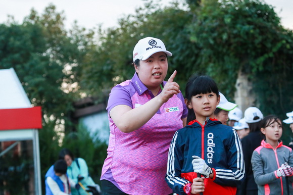 赛场上颇具女王风范的冯珊珊,现场却非常亲和可爱,不仅幽默地与球迷攀谈,还非常用心,她说:“除了推杆之外,每一支球杆都有自己能打出的固定距离,木杆并没有什么不同,它只是其中距离较远的球杆而已。因为打的越远也就越难控制,所以最重要的是要容许自己犯错误,不怕它,就能打得好!”细心的冯珊珊还注意到其中一位青少年球员的鞋子有些不合脚,现场跟小朋友的家长嘱咐了鞋子对脚型、发力技巧的重要性。