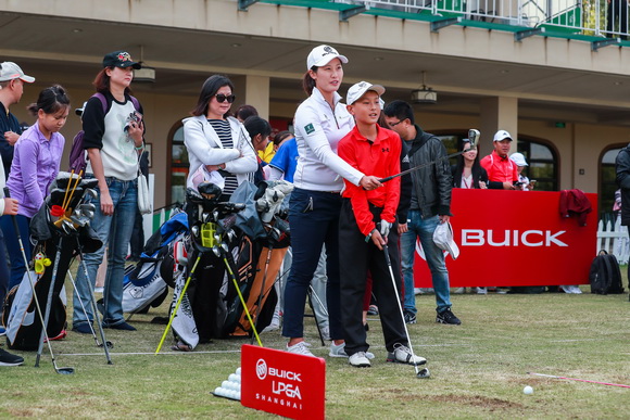 【golftime讯】10月19日别克LPGA锦标赛第二轮,韩国名将金世煐把握住机会,成功反超世界排名第二的阿瑞雅,冲上了别克LPGA锦标赛榜首。赛后,曾携手征战里约奥运会的高尔夫女将、别克高尔夫代言人冯珊珊、别克高尔夫大使林希妤来到了场外,为12位幸运的高尔夫爱呈现了一场难得的明星高尔夫私教课。