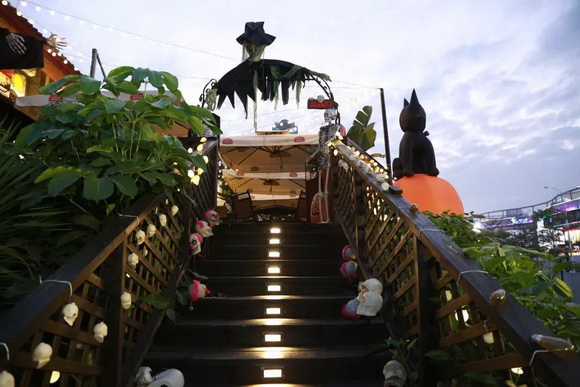 除了巴迪奥餐吧,东莞观澜湖千树里咖啡厅也不甘寂寞,加入了万圣节”捣蛋鬼“大军——格林童话万圣节狂欢趴,变装打扮、人鬼齐欢、全城骚动。