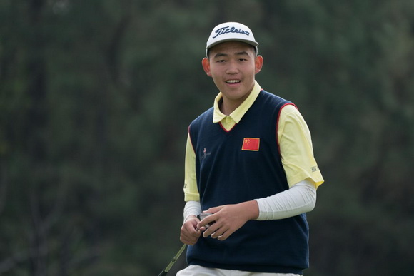 顶着2017中国高尔夫球业余公开赛总决赛男子组冠军光环的15岁年轻小将陈顾新一出场便吸引了大家的目光。陈顾新一开始打得有点紧张,前4洞只打出了标准杆成绩,调整状态后,其在第5、第7洞接连抓到2只小鸟,在12号洞更射下了一头老鹰,赢得现场阵阵掌声。“今天我各方面发挥还算理想,但在后9洞的发挥上有所欠缺连吞2博基,不过比赛就是这样,每个人都会有遗憾的洞。希望接下来的比赛能够力挽狂澜,再接再厉!”