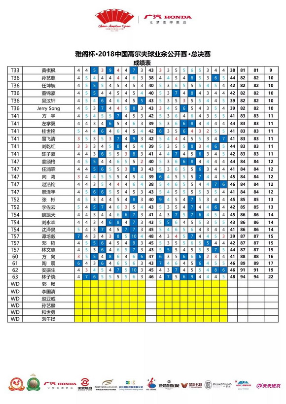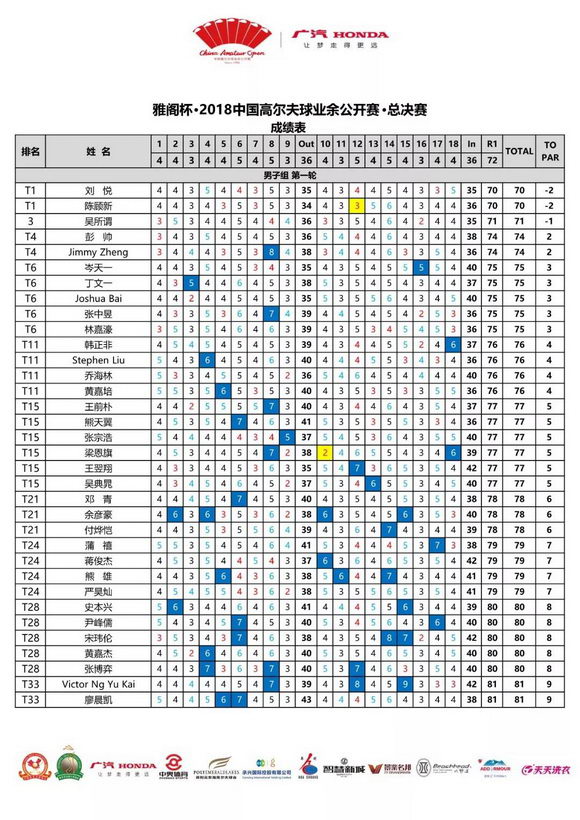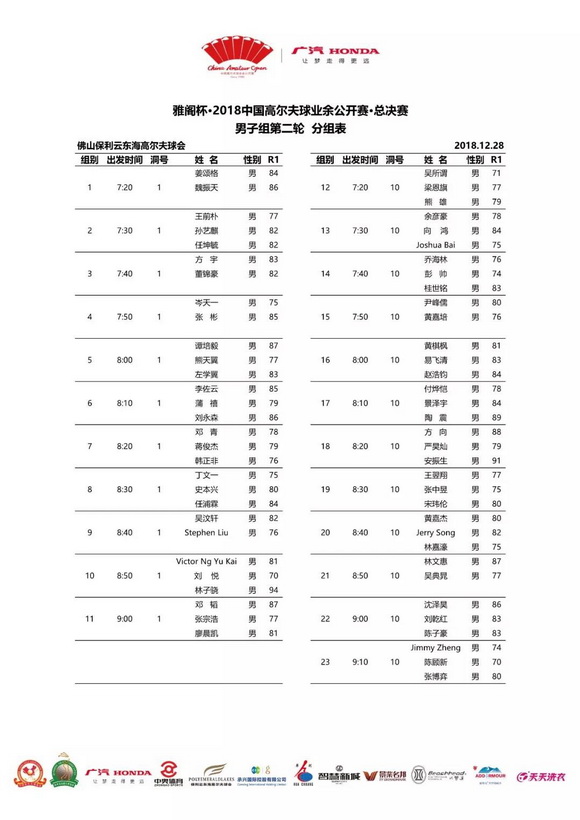雅阁杯·2018中国高尔夫球业余公开赛总决赛男子组首轮暂告一段落,希望选手们在接下来的决赛轮继续努力,上演更加激烈的冠军大战!而根据天气预报,明天佛山的气温将会有所下降,赛事组委会也贴心提醒参赛选手们注意保暖、保持最佳状态。