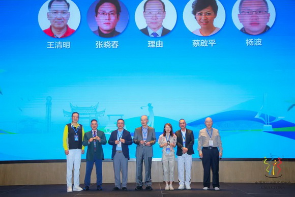 在晚宴现场,福建省高尔夫球协会秘书长黄玮平先生、中华台北高尔夫协会秘书长黄纪文先生为累计参会达10届的嘉宾:张磊、王学锋、李伟南、龚磊、凌云、柏景山颁发纪念章。