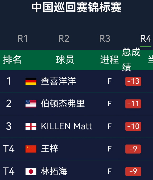 中巡赛锦标赛第三轮查喜洋洋-10领先 王梓/唐海钊...(12月20日)