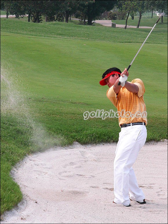 冯序沙坑救球,他今天的成绩是70杆-2。(摄影:golftime·阿沛)
