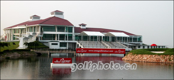 【golftime讯】2006年8月31日,欧米茄中巡赛上海站在大上海国际高尔夫度假村展开第一轮的赛事。球场全长7066码,标准杆72杆,阳澄湖畔球道湖波荡漾,全场水障碍十面埋伏。与上一站山东海阳站LINKS风格迥异,这带给欧米茄中巡赛的球手另一个全新的球场风格。