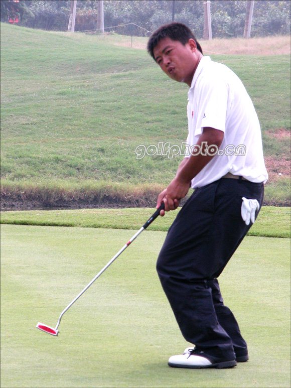 首轮与李超、廖贵明、吴伟煌、张连伟同排名第一位的国家队选手樊志鹏,继昨天69杆的好成绩后,今天继续好势头,打出70杆-2。樊志鹏今天与尚磊、刘安达同组,于8:20从1号洞出发。他今天上下半场打的很平均,都分别捉了2只鸟,吃了1个博基,成绩都是35杆。第二轮樊志鹏的成绩是70杆-2。