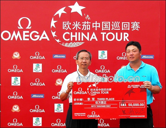 大上海国际高尔夫球会总经理吴安国为戚增发颁发季军奖金(摄影:golftime·阿沛)