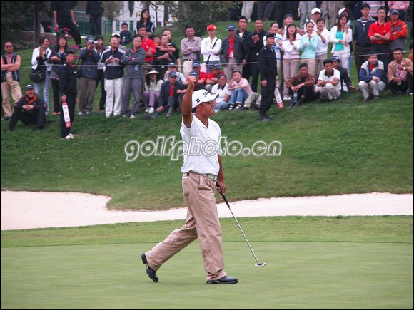 黄明杰在第18洞捉下小鸟,-4成绩把亚军牢牢抓在手上。(摄影:golftime·阿沛)
