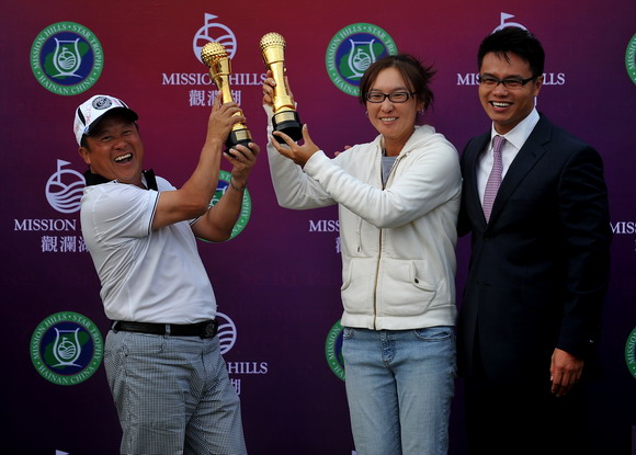 【golftime讯】2010观澜湖职业高尔夫明星邀请赛10月31日第二轮,男职业选手蒙哥马利因为违犯当地规则移动了不可移动的广告版被罚两杆,-4领先成绩变-2,墨西哥选手奥查娅凭借最后一洞的小鸟球总成绩为-4,赢得128万美元冠军奖金。在职业与业余选手团队成绩中,台湾名将龚怡萍和香港影星曾志伟打出低于标准杆15杆的成绩,赢得团体冠军,获得10万美元。
