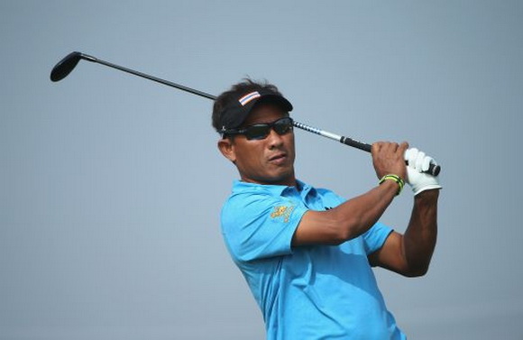 【golftime讯】2015年BMW大师赛第三轮11月14日阳光明媚中的美兰湖名人赛球场,泰国46岁老将通差·贾第尽管在最后一个洞吞下唯一的博基,但他仍然以捉7鸟66杆-6,三轮杆201的-15一杆优势占据了领先榜首位。中国军团领衔者是三轮成绩212杆-4并列第34位的18岁国家队队员窦泽成。202杆-14并列第二的是,第二轮领先者丹麦选手卢卡斯-毕雅格德,西班牙名将加西亚,以及中韩混血安秉勋。