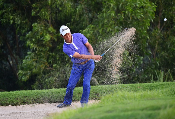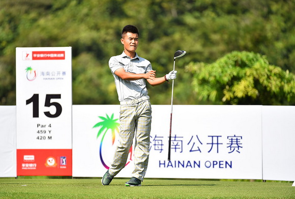 【golftime讯】2015海南公开赛暨平安银行中国美巡赛,11月26日在三亚龙泉谷高尔夫球会风中开打,来自12个国家和地区的108名球手参与了本站比赛的角逐。在首轮比赛中,龙泉谷的山风成为决定各位球手最终成绩的主要原因。来自韩国的黑马球手孙俊业在本轮比赛中一鼓作气拿下7只小鸟,交出18洞65杆-7、全场无的漂亮成绩,以4杆优势傲视群雄。 (摄影:王述)