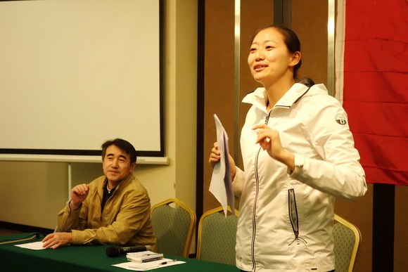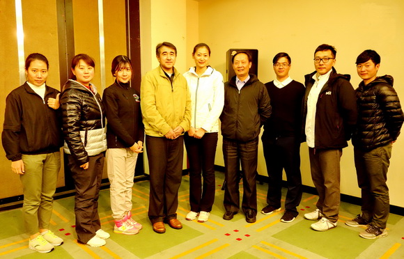 (第三排左)中国第一代职业球手、中国十佳教练、叶莉英启蒙教练朱彤彤, 带领徒弟来考试也认真参加选手会议!