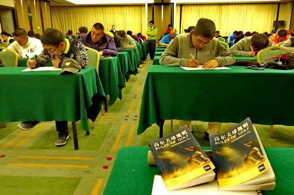 中国高尔夫球协会职业球员考试始自1993年,当时主抓这项工作的就是现在的奥保部副部长钟民和中高协副秘书长宋亮亮。对于高尔夫运动来说,高尔夫球规则和当地规则是维护高尔夫运动秩序、指引业余球员和职业球员赛事的标准。通常比赛中即使在没有裁判的情况下,每位选手应具有使比赛公平公正的责任;基于公平竞争的精神,每一位选手应要求自己成为一位遵守规则的“裁判”。所以规则和相关知识的考试,也是中国高尔夫球协会职业球员考试中最重要的环节之一,这在其他运动项目中是极其鲜见的。