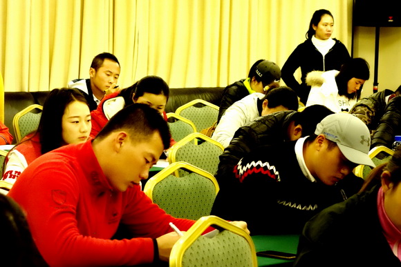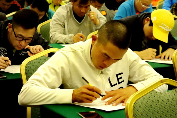 【golftime讯】2016年中国高尔夫球协会专业会员之职业运动员入会测试,2月21-26日在珠海金湾高尔夫球会举行。根据《规程》规定,24日晚上进行了包括高尔夫球规则以及相关知识的“高尔夫学科考试”,有81位男、女选手参加了10道题的笔试答卷考试。