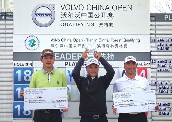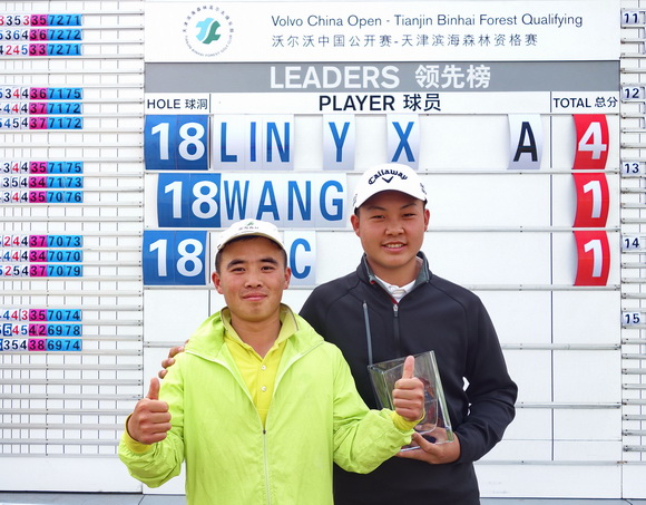 【golftime讯】2016年沃尔沃中国公开赛天津滨海森林资格赛,4月13日在天津滨海森林高尔夫俱乐部收杆,15岁的北京左手业余球员林钰鑫连续两轮交出70杆,以总成绩140(-4)杆的3杆优势夺冠。并列第二的职业球员王煦和李超在5人延长赛中胜出,与林钰鑫一起获得了今年资格赛的最后三个入围名额,将于本月底前往北京参加第22届沃尔沃中国公开赛。