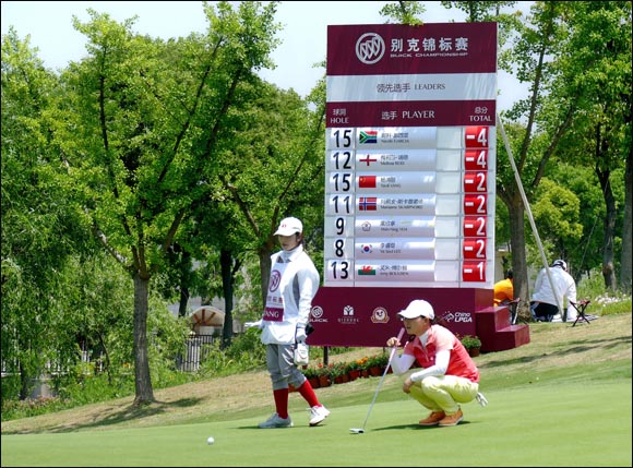 【golftime讯】2016别克锦标赛5月12日在上海旗忠花园高尔夫俱乐部开打。108位来自国内外的佳丽参加本周的比赛。周四上海的天气阳光明媚,但有三至四级风。中国球员杨涛丽上午7:51从10号洞出发,转场前捉了3只鸟,没出现一个博基。转场后,她吞了一个博基,捉了一只鸟。她首轮的成绩是69杆,低于标准杆3杆,目前会馆并列第5。2013年因结婚生子的杨涛丽“挂杆”,今年复出后就有不俗表现。
