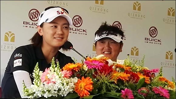 【golftime讯】别克锦标赛在上海旗忠花园高尔夫俱乐部5月14日进行第三轮。两轮的比赛结束后,本场比赛最大的两颗明星——“中国本土大满贯第一人”冯珊珊和“美巡人气女神”崔罗莲在分别打出66杆和68杆后,并列处于领先榜首位,而排在第三位的是与她们一起征战LPGA的好伙伴林希妤。今天的第三轮比赛,冯珊珊与崔罗莲将连续第三天同组,而与她们同组的其中一名业余选手是中国著名歌手孙楠,可想而知这一组的关注度有多高。周六上午10:34分,这组球员来到1号洞发球台,因为人气职业选手和人气业余选手都聚在一组,1号洞发球台周围有很多观众。