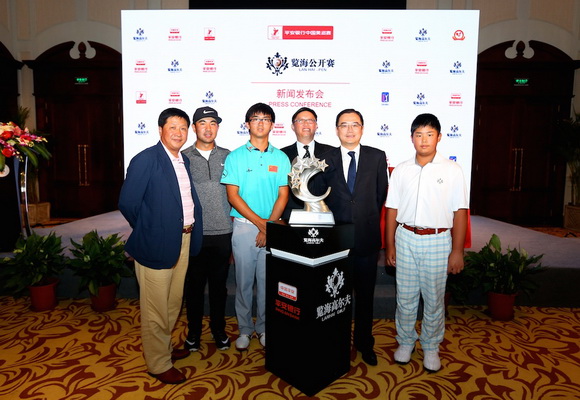 【golftime讯】2016平安银行中国美巡赛览海公开赛,将于本周四在览海国际高尔夫俱乐部拉开序幕。伴随韦巡赛球员王耀进、实力名将黑纯一、本赛季前三站冠军得主窦泽成、亚历山大·康的荣耀加盟,本站比赛迎来了155人的超强选手阵容,他们来自中国本土、美国、澳洲、日本、韩国、中华台北等15个国家和地区,其中包括72名中国选手。6月7日,赛事新闻发布会在览海国际高尔夫俱乐部会所举行。平安银行上海分行行长助理沈寅先生;上海市高尔夫球协会副会长王锦培先生;上海览海国际高尔夫俱乐部总经理吴甫桢先生;球员代表2016赛季平安银行中国美巡赛两冠王窦泽成;平安银行中国美巡赛凯迪拉克锦标赛冠军美国选手亚历山大·康以及览海高尔夫俱乐部主场外卡选手代表球员——13岁的成禧荣出席了新闻发布会。