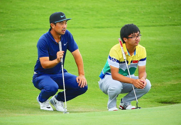 新职业佘梓瀚在球童爸爸的全力配合下,打出了无博基一轮,并抓下两只鸟,交出-2杆的成绩。目前与苏东、肖博文、段晨骁、庄主、张蕙麟等共14名球员并列居于14位。“开始打的时候挺担心的。因为对付这种需要精准短杆的球场,我并不是特别擅长。”佘梓瀚说,“因为也是主场,铁杆攻果岭发挥不错,开球很稳,推杆一般。所以没有博基。”13号洞,佘梓瀚用8号铁攻果岭,留下5码左右的推杆,抓下了第一只小鸟。随后他又在375码的15号洞抓下了第二只小鸟。