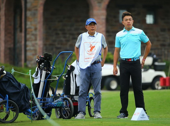 陈定根是当天较早完赛的选手之一,他交出了一个令自己满意的成绩。“今天总的来说发挥挺好的,第一轮嘛,总体感觉还是不错的。”陈定根说。10号洞出发的他在后九洞抓得一只老鹰、一只小鸟,吃下一个博基,以-2杆的成绩转场。“一号洞开球,飞得很好,”陈定根回忆老鹰球道,“然后用小鸡腿攻果岭,很准。就留下一个一码左右的推杆,直接就进去了。”