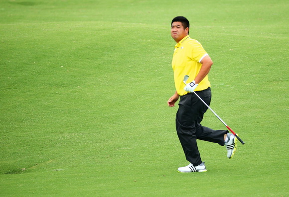 当天比较遗憾的是首轮发挥尚佳的中国选手张佳。他从10号洞出发,来到14号洞时,手不小心被刺扎伤,随后连续吞了几个博基,从领先绑上跌落下来。目前张佳以总成绩+1杆,并列42位。