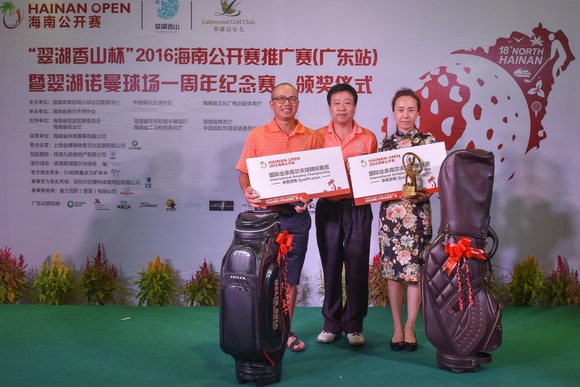 【golftime讯】9月26日,“翠湖香山杯·2016海南公开赛巡回推广赛(广东站)暨翠湖诺曼球场一周年纪念赛”在珠海翠湖高尔夫球会圆满落幕。作为2016“海南公开赛”巡回推广赛的收官大战,本站比赛不但受到了广东省“海粉”的热烈追捧,各方嘉宾亦齐聚翠湖球会,为2016“海南公开赛巡回推广赛”的收官大战送上了衷心祝福;同时,他们也纷纷预祝即将举办的2016“海南公开赛”三大赛(欧巡挑战赛、国际业余锦标赛、国际青少年锦标赛)圆满成功,再创佳绩。