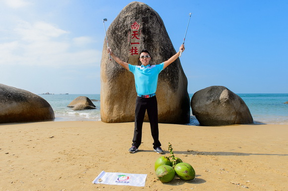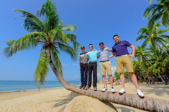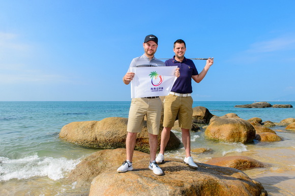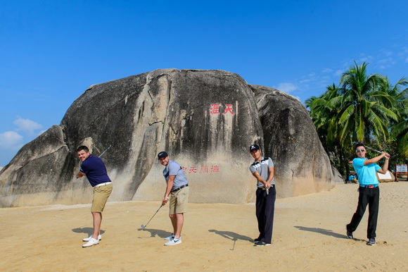 【golftime讯】10月11日,在2016海南公开赛暨欧巡挑战赛开赛之前,中国球员欧阳正、佘梓瀚,以及欧洲球员Jordan Smith、Sam Walker四位球星一起来到了三亚市地标风景区天涯海角,为本次比赛拍摄了开赛宣传照,以下为他们的精彩瞬间!