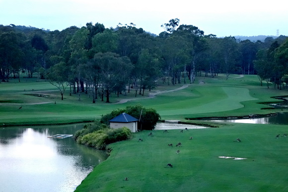 在会所一楼和二楼面向球场方向的落地大玻璃窗前,最让考察团成员兴奋见到的是,落日余辉中的球场上还没有“下班”的不请之客灰袋鼠们,成群结伴地在球道上、长草区、水域旁吃喝不停。而在欢迎晚宴餐厅里巨大圆餐桌上的花盘中,守候着一个喜盈盈的、提着一桶高尔夫球的“小帅哥”人偶。考察团中的老相识与新朋友,尽享东道主南山集团澳洲公司领导、球会领导和中澳员工准备的美食和美酒,期待几日的活动有更多的惊喜。 |