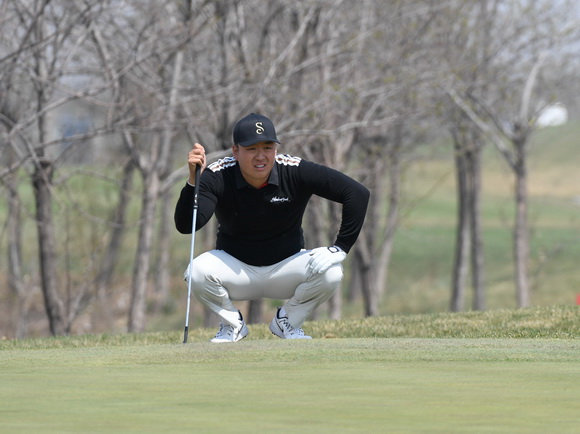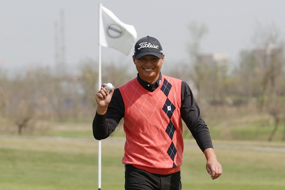 今天,球场的风势依然强劲,国家集训队队员王东禹将首轮的失利置之脑后,轻装上阵向领先榜发起猛烈冲击。和以往一样,这次依然是由他父亲担任球童。在父亲的协助下王东禹发挥出精湛的球技,大风中抓下7只小鸟,势不可挡。在17、18洞连抓小鸟完美收杆后他一度单独领先。