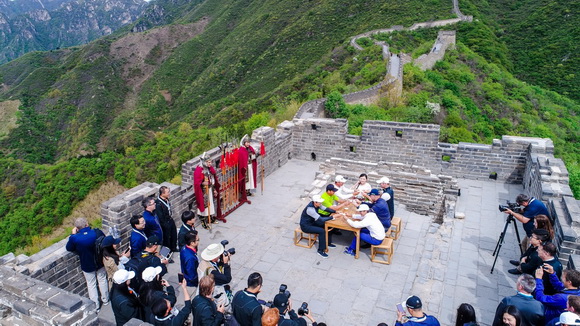 “文武之道,一张一驰”。品茗之后,球星们又在古长城上拿起方天画戟等六件中国兵器,在京剧武生的指导下客串了一回中国古代武士,其乐无穷。