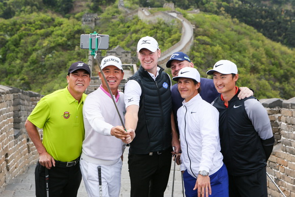 曾代表欧洲队征战2016年莱德杯的英格兰选手伍德已多次来中国参赛,却是第一次登上长城。这座古老奇迹的雄姿让他感到非常震撼,忍不住拿出自拍杆来与其他球星合影留念。“我没有想到长城的规模是如此大,简直令人兴奋。很高兴能有机会到此一游。”
