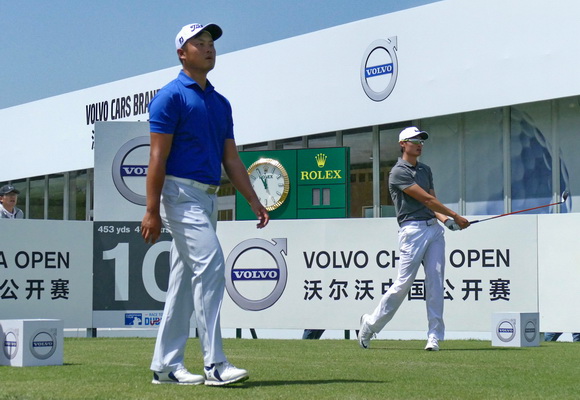 曹一今天在前九洞发挥抢眼,4到8号洞连续的4只小鸟和1头老鹰让他与李昊桐一道领跑中国军团。本就是好朋友的两人更是在比赛中齐头并进。“我和李昊桐前5个洞的成绩一模一样的,比赛中我俩相互鼓励,气氛很轻松。”