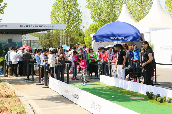 【golftime讯】4月29日是第23届沃尔沃中国公开赛第三轮比赛,68名晋级的球员在北京怀柔通盈·雁栖湖高尔夫球场展开决赛阶段的角逐。而赛场外的公众活动区同样热闹非凡。