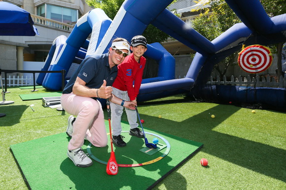 从上午10点开始活动现场的各个体验区就排起了长龙,很多随家长前来的小朋友在现场工作人员的指导下,拿起球杆挥出人生第一杆。对孩子们来说能否将球从沙坑里打出来或者推进洞杯、握杆姿势正确与否都不重要,最重要的是他们在沃尔沃中国公开赛第一次接触这项富有乐趣和挑战的运动。