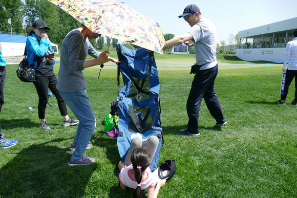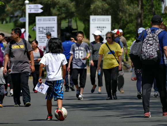 山水怀柔素来被视为“京郊明珠”和“首都后花园”,而恰逢五一假期,这场融合了“比赛+球星+美景+美食”等元素的国家高尔夫球公开赛,为北京市民提供了一个踏青、观赛、美食、休闲皆相宜的理想场所。很多市民全家出动一大早就从市区出发,驱车来到雁栖湖球场。这其中既有资深高球爱好者,也有带着好奇心初次观赛的观众。而公众活动区的设置能满足所有人的需求。
