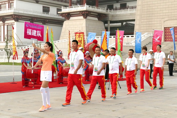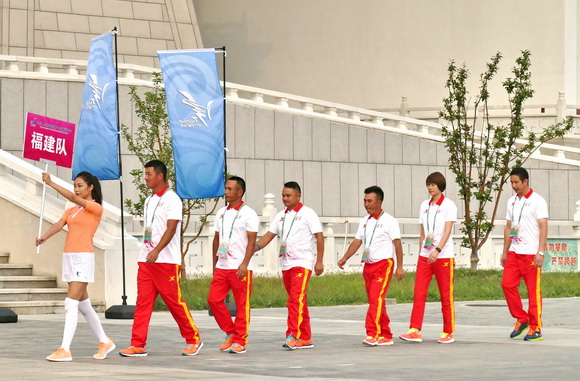 福建队二吴当先,吴阿顺、吴伟煌、元天、何绍才入场,领队、教练保驾护航。