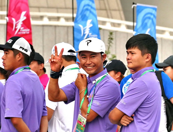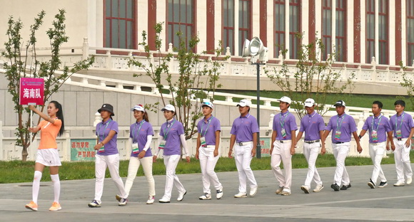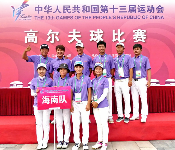 【golftime讯】中华人民共和国第十三届运动会高尔夫球比赛项目,9月1日在天津盘山高尔夫球会举行参赛代表队入场仪式,14支参赛代表队领队、教练、队员,全体裁判员精神抖擞,闪亮登场。东道主天津队潘艳红代表运动员宣誓,裁判长冯力源代表裁判员宣誓。随后各队的大合影环节充满战斗气息和欢乐气氛。大赛一触即发,2—5日四轮比赛哪个参赛队将捧起团体冠军奖杯?等着瞧。 (摄影/报道:golftime·阿沛)