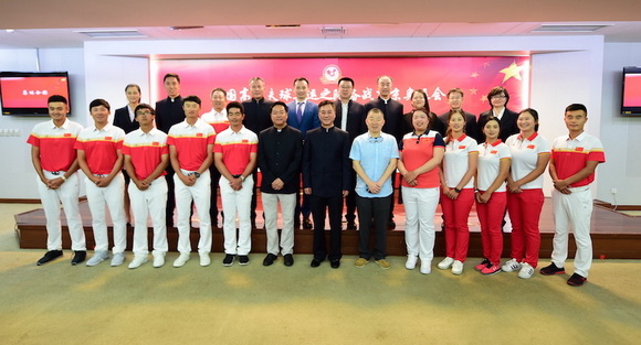 备战东京奥运会中国高尔夫球国家队部分队员与新中高协领导亮相。