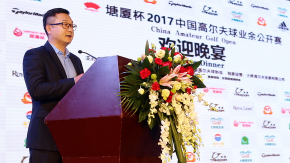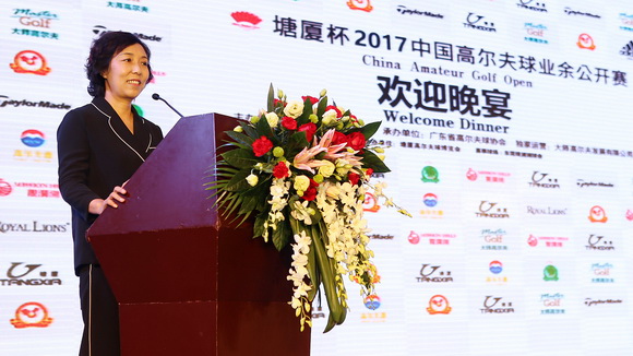 【golftime讯】11月19日,2017“塘厦杯”中国高尔夫球业余公开赛欢迎晚宴在东莞观澜湖圆满落幕。男子组比赛将于明日正式开打,女子组则将于周二开启首轮对决。国家体育总局小球运动管理中心奥运保障部副部长钟民;广东省高协副主席兼秘书长、广东省高尔夫球运动中心主任冯雄;广东省东莞市塘厦镇委委员许自福;湖南省高尔夫球协会副主席陈菁;大师高尔夫发展有限公司董事长赵延年;中国高尔夫球队队长、广东队队长梁文冲;观澜湖集团执行董事李佳琦;CCTV-5高网频道总监 单明;北京体育广播节目监制李轩;新华社体育部高级记者杨明;广东省高尔夫球协会副秘书长贾晓峰;广东省东莞市塘厦镇高尔夫产业发展办公室主刘裕兴、阿迪达斯大中华区公关活动及广告经理李缘;贵州茅台酒股份有限公司高尔夫酒、广东省粤西省区东莞城市经理董碧波;国瓷永丰源市场运营总监刘一和众多球员、媒体出席了今晚的活动。